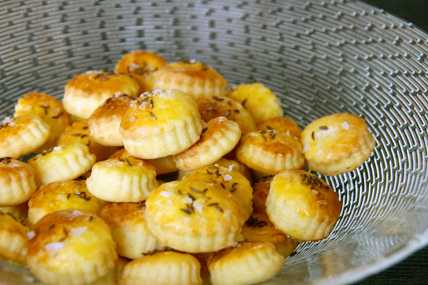 - Das ausgestochene Gebäck auf ein mit Backpapier ausgelegtes Backblech legen. Mit Eigelb bepinseln und ein bisschen Kümmel und/oder grobes Meersalz darüber streuen. Bei 200°C Heißluft im vorgeheizten Ofen für 12-15 Minuten backen, bis das Gebäck goldbraun ist.