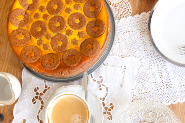 Den restlichen Teig vorsichtig ausrollen und mit einem Keksausstecher formen ausstechen. auf die Füllung legen. (Wahlweise könnt ihr den Teig auch einfach in kleine Stücke zupfen und diese auf der Füllung verteilen). Im Backofen ca. 60 Minuten backen, bis der Kuchen goldbraun ist, aber innen noch ein bisschen wackelt. Aus dem Ofen nehmen und in der Form vollständig abkühlen lassen. (Am Besten im Kühlschrank über Nacht.)